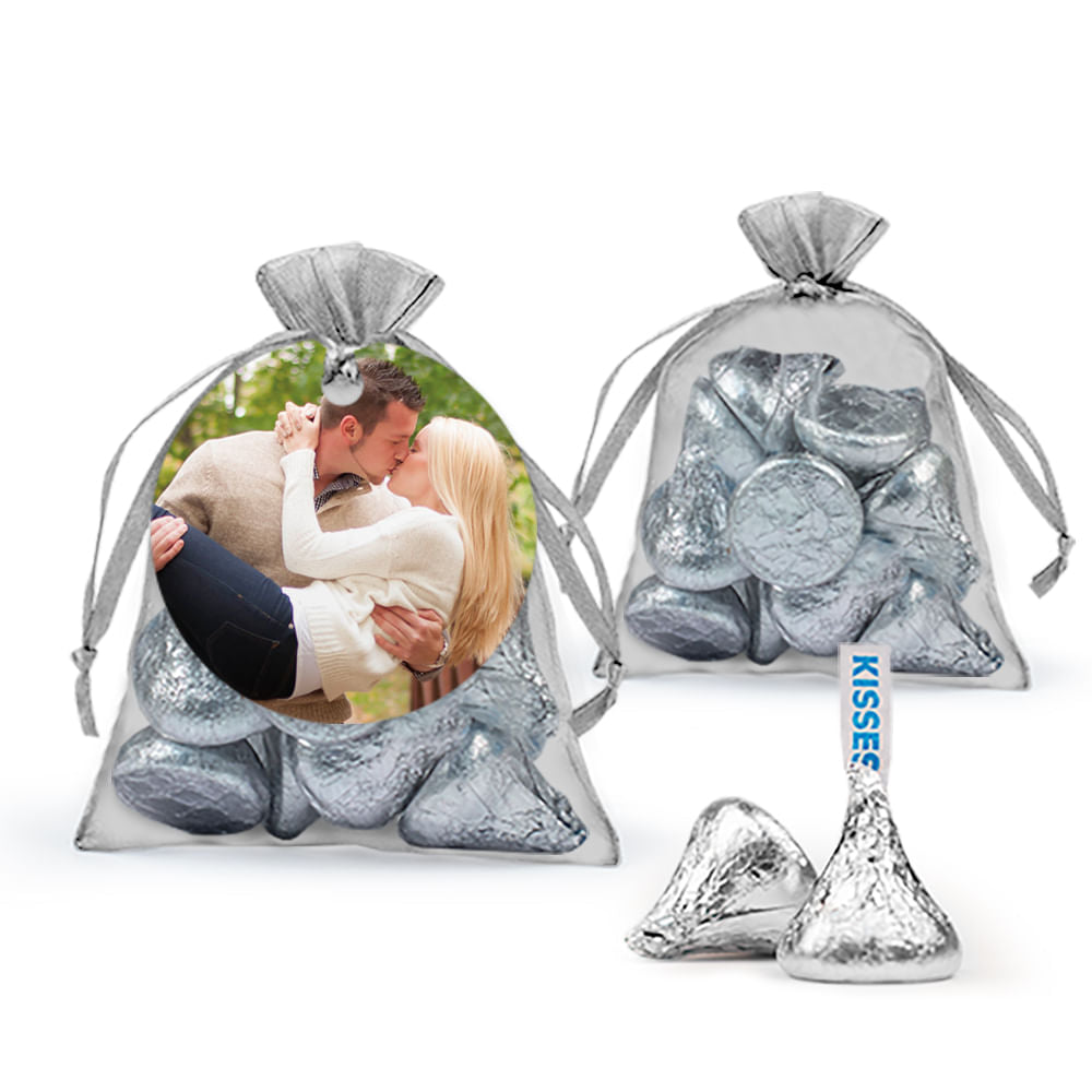 Personalized Dinner Rehearsal Photo Hershey's Kisses Organza Bag with Gift Tag