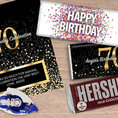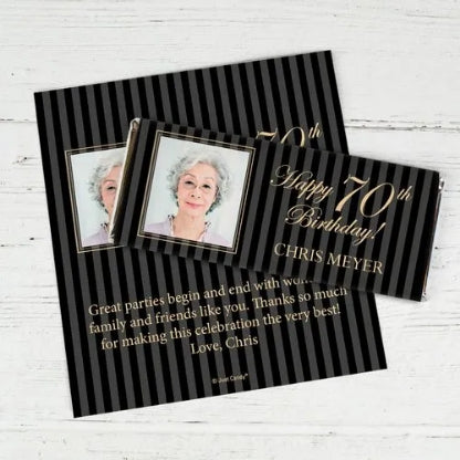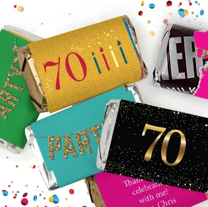 Personalized 70th Birthday Celebration Chocolate Bar Wrappers