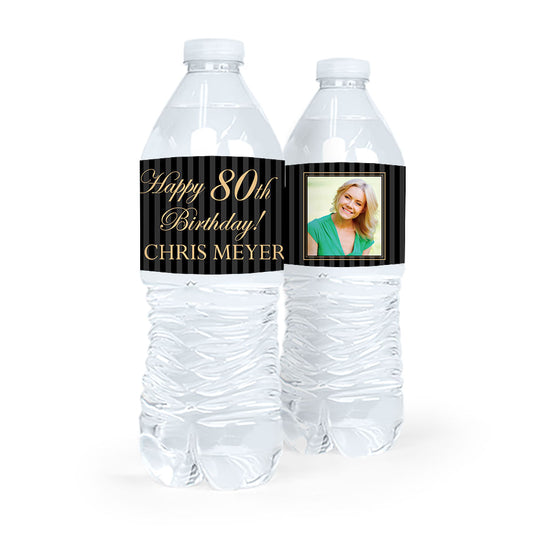 Personalized Milestones Birthday Photo 80th Water Bottle Sticker Labels (5 Labels)