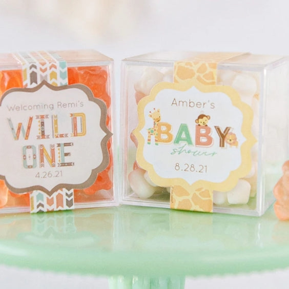 Personalized Baby Shower Baby Animals Favor Cube with Gummy Bears