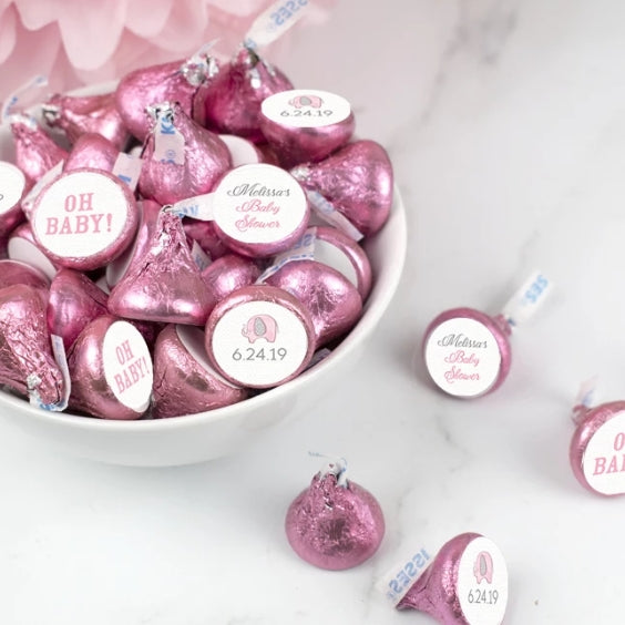 Personalized Baby Shower Girl Elephant Hearts Gummi Bears