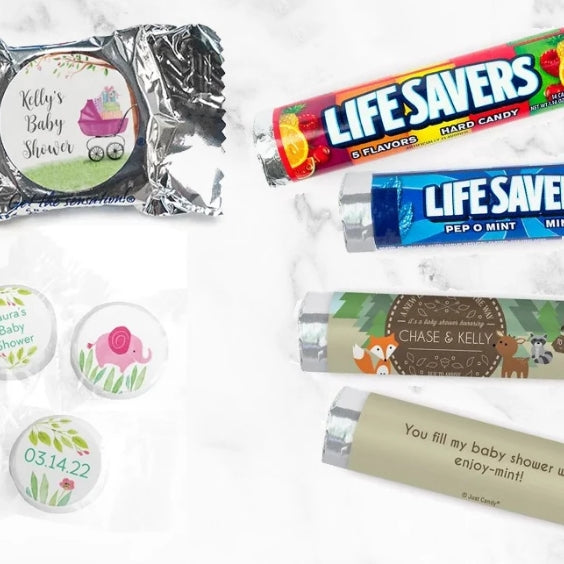 Personalized Baby Shower Oh Baby Candy Bags with Just Candy Milk Chocolate Gems