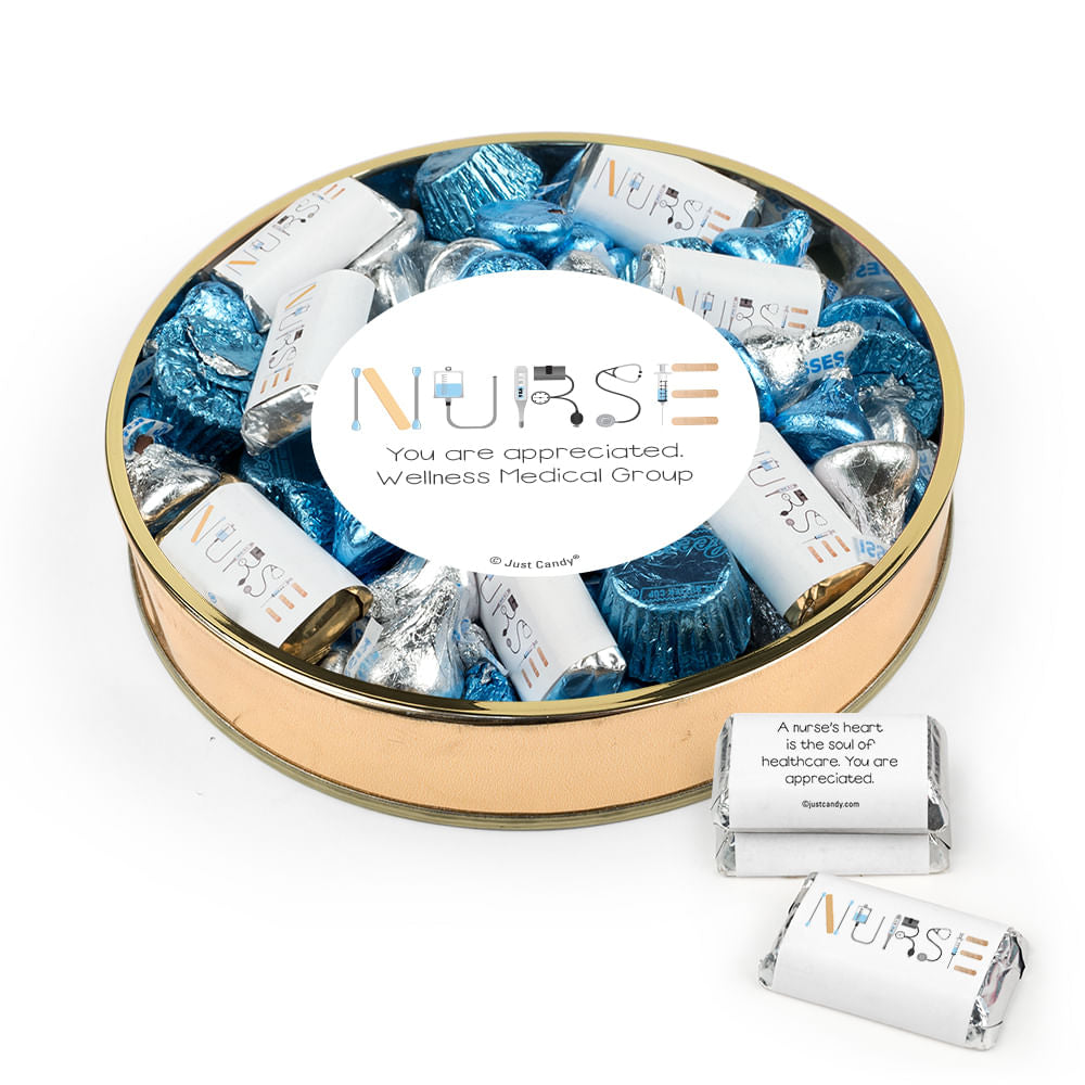 Personalized Nurse Appreciation Large Plastic Tin Hershey's Miniatures, Kisses & JC Peanut Butter Cups