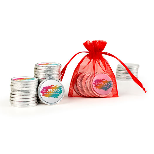 - Includes: 5 Chocolate Coins with Stickers, 1 Organza Bag
