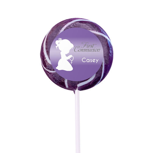 - Dimensions: Lollipop: 5 1/8" stick, 1 3/4" pop diameter; Sticker: 1.25"