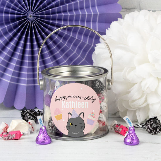 - Each Paint Can Includes Approximately : 8 Milk Chocolate Hershey's Kisses, 8 Dum Dums, 8 Pieces of Salt Water Taffy, 4 Caramel Filled Foil Balls