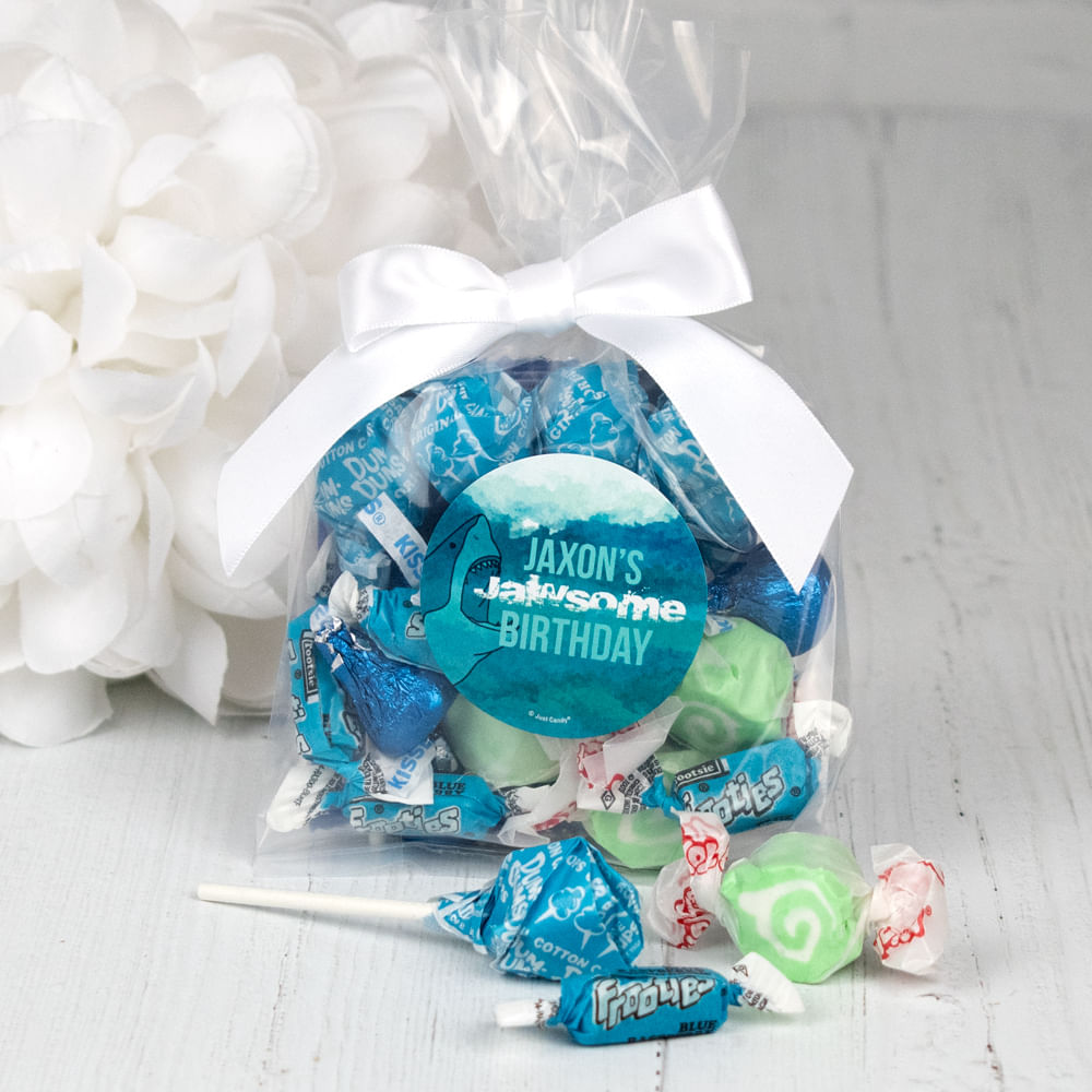 - Each Bag Favor Includes Approximately : 6 Hershey's Milk Chocolate Kisses, 7 Dum Dums, 4 Pieces of Salt Water Taffy, and 6 Frooties