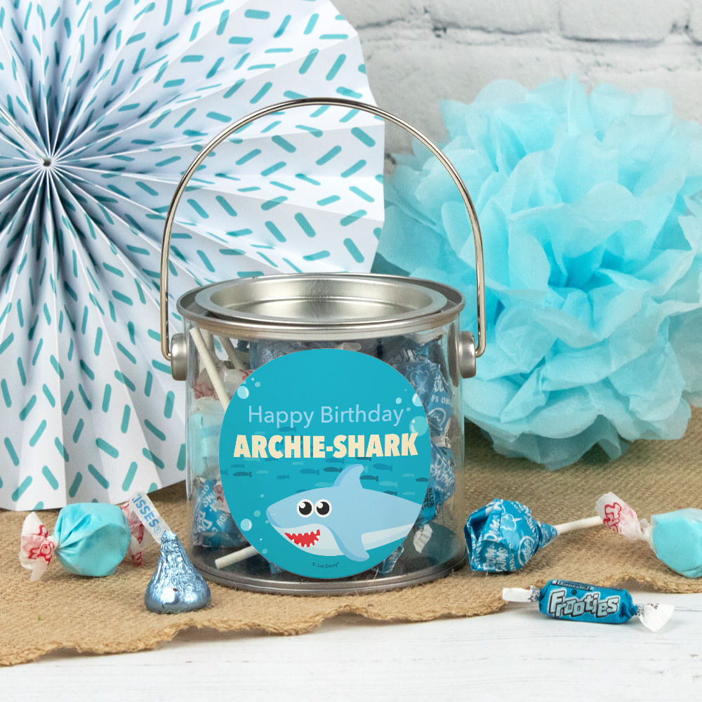 - Each Paint Can Includes Approximately : 8 Milk Chocolate Hershey's Kisses, 8 Dum Dums, 8 Pieces of Salt Water Taffy, 4 Caramel Filled Foil Balls