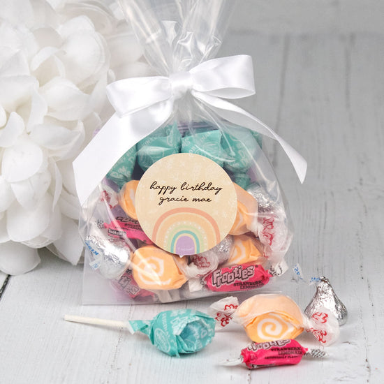 - Each Bag Favor Includes Approximately : 6 Hershey's Milk Chocolate Kisses, 7 Dum Dums, 4 Pieces of Salt Water Taffy, and 6 Frooties