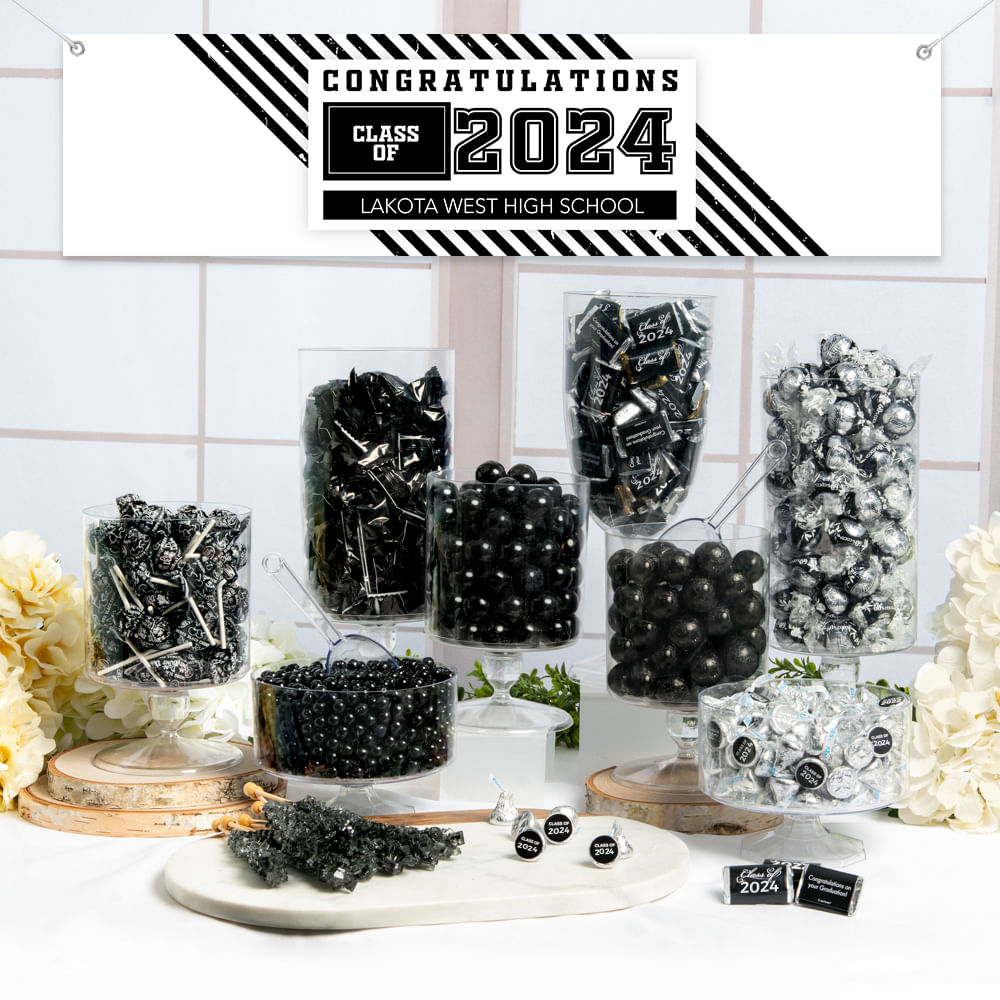 Personalized Black Graduation School Spirit Stripes Deluxe Candy Buffet