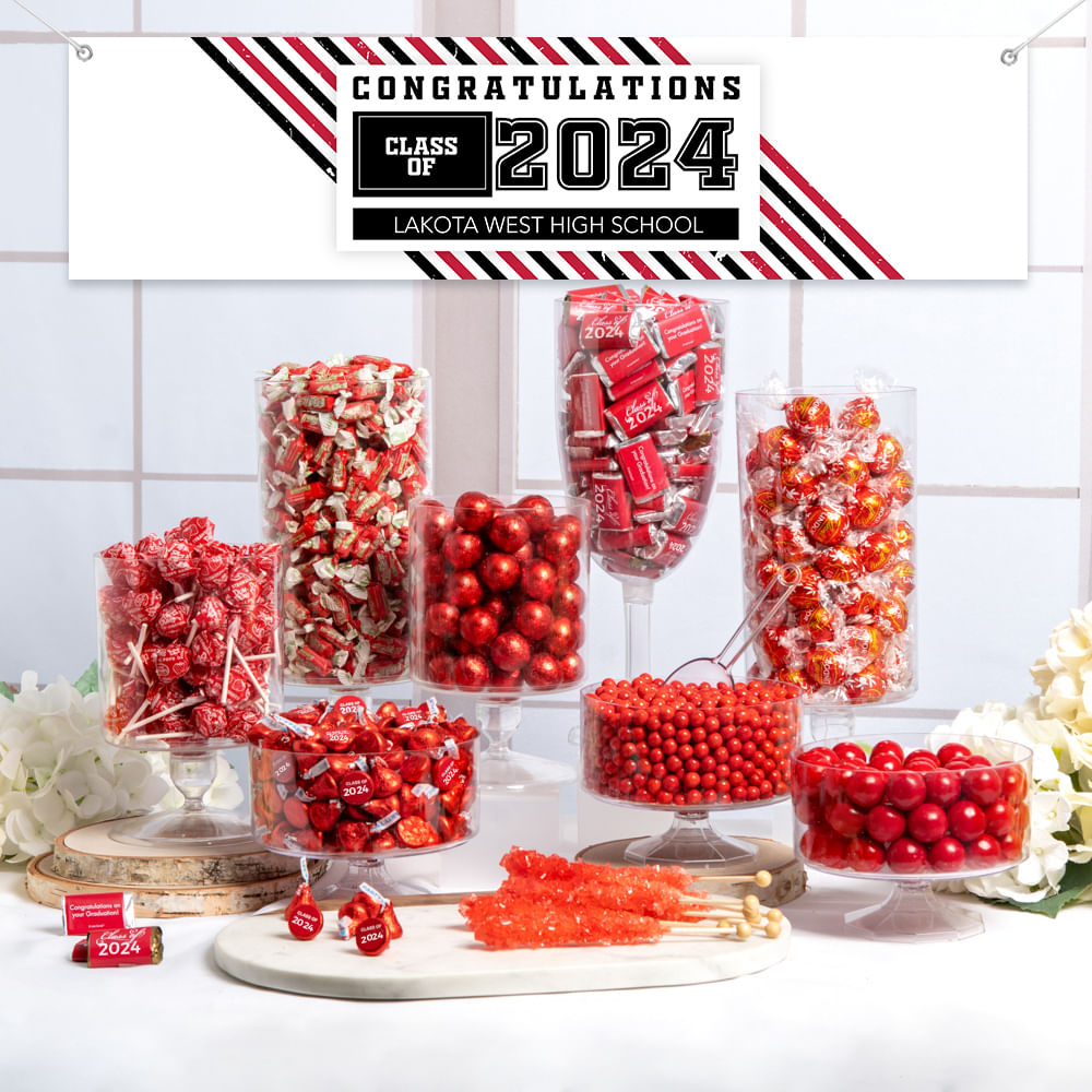 Personalized Red Graduation School Spirit Stripes Deluxe Candy Buffet