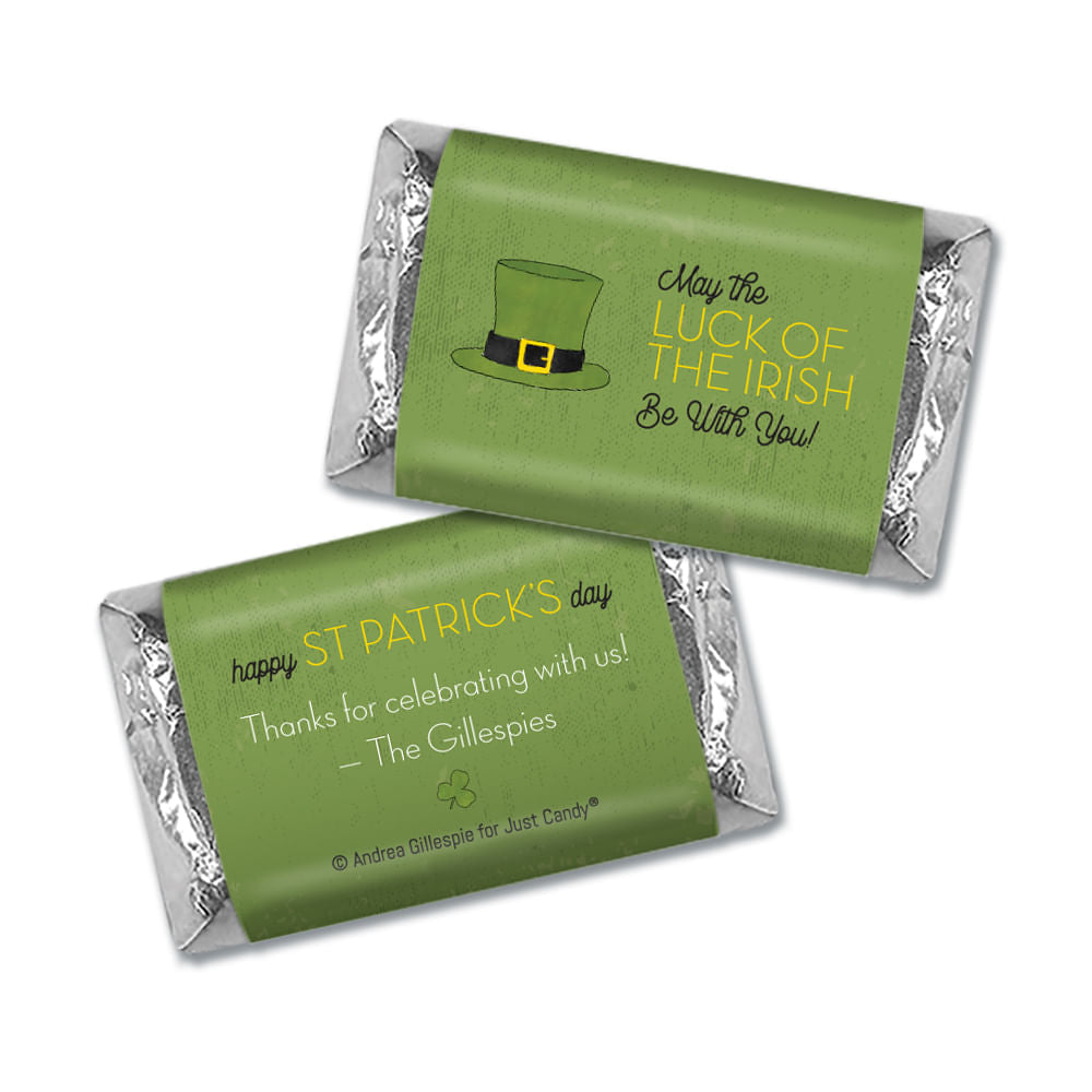 Personalized St. Patrick's Day Rustic Hat Hershey's Miniatures in XS Organza Bags with Gift Tag