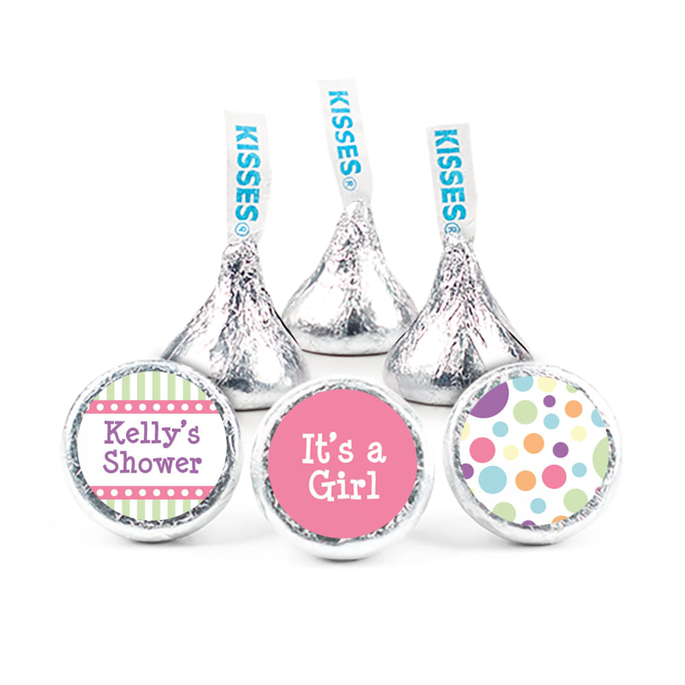 Baby Shower Pink Stripe Personalized 3/4" Sticker (108 Stickers)