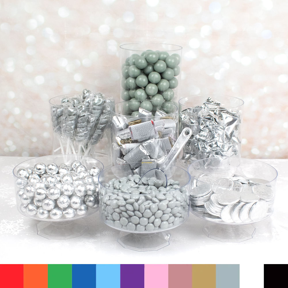 - Buffet Includes 13lbs of Candy: 1lb Chocolate Coins, 2.6lbs Gumballs, 22oz Wrapped Hershey Minitures, 2lbs Jelly Beans, 80ct Flat Lollipops, 24oz Chocolate Gems, 28oz Sugared Gummy Bears, 1lb Taffy, 1.5lb Chocolate Balls