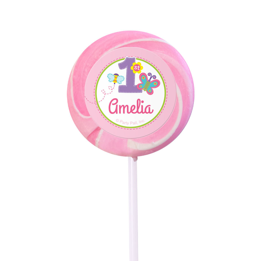 Birthday Personalized Small Light Pink Swirly Pop Butterfly 1st Birthday (24 Pack)