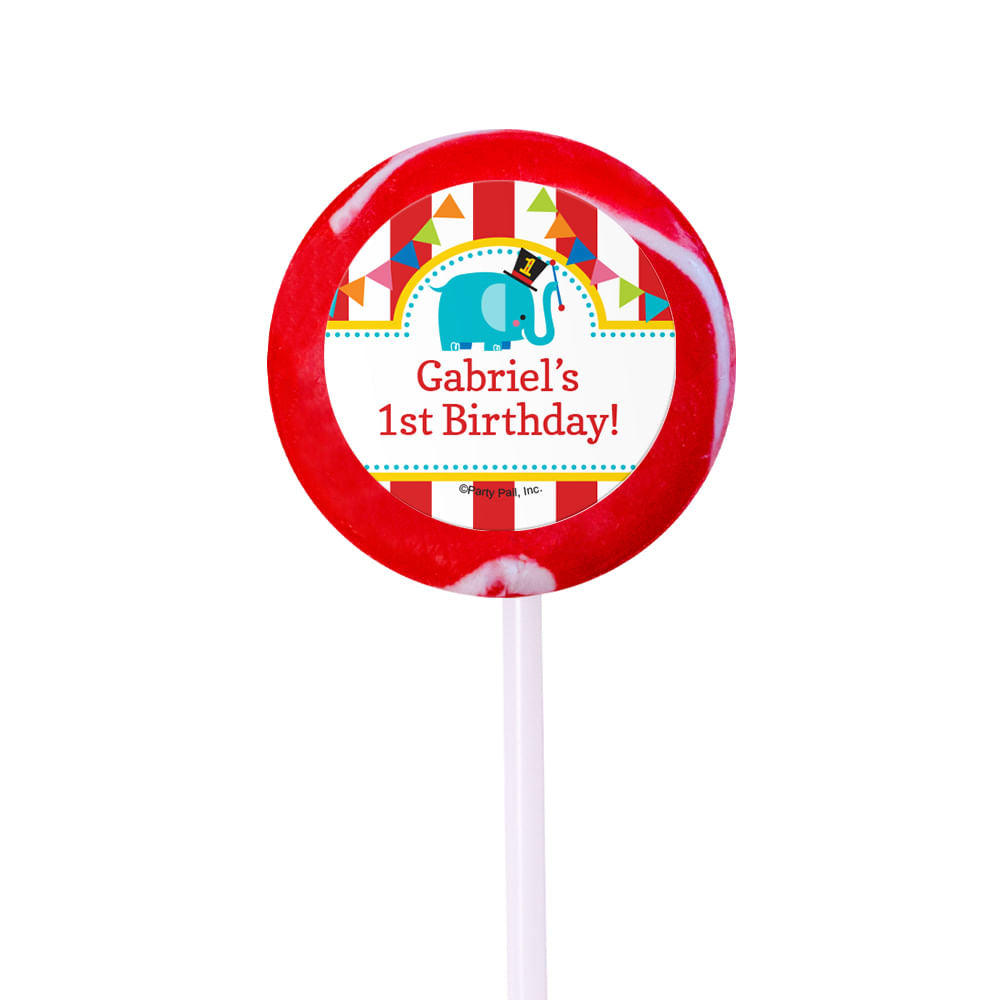 Birthday Personalized Small Red Swirly Pop Circus 1st Birthday (24 Pack)