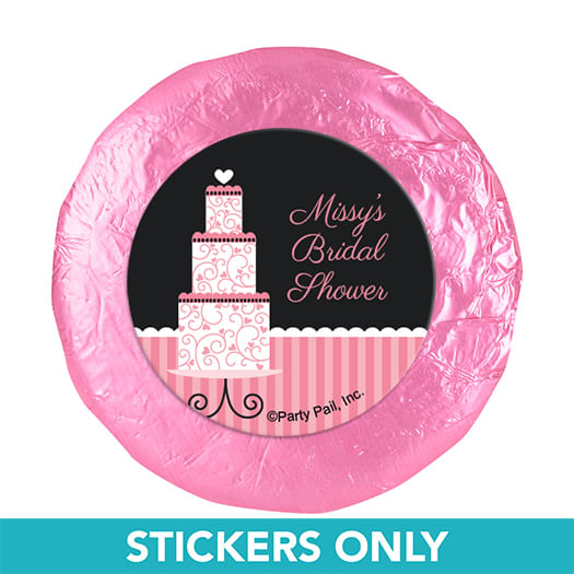 Personalized Bridal Shower Pink Cake 1.25" Stickers (48 Stickers)