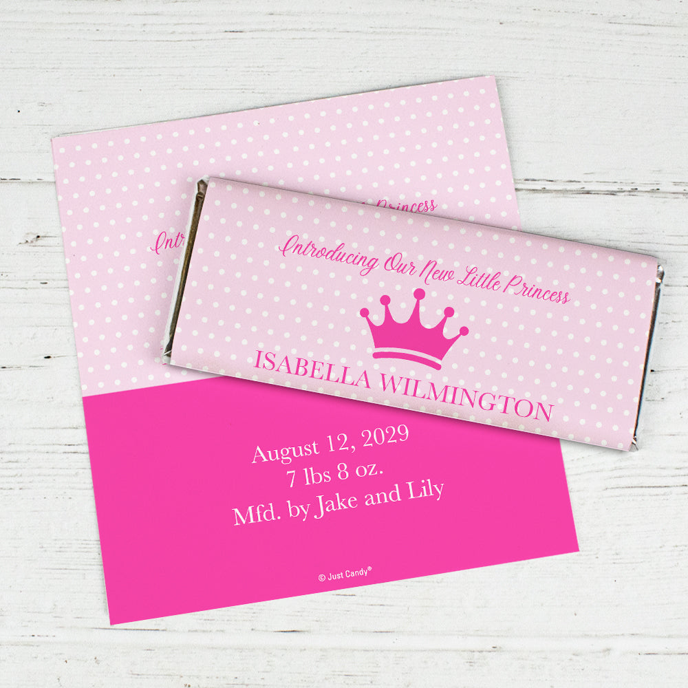 Girl Birth Announcement Personalized Chocolate Bar Wrappers Pink Crown