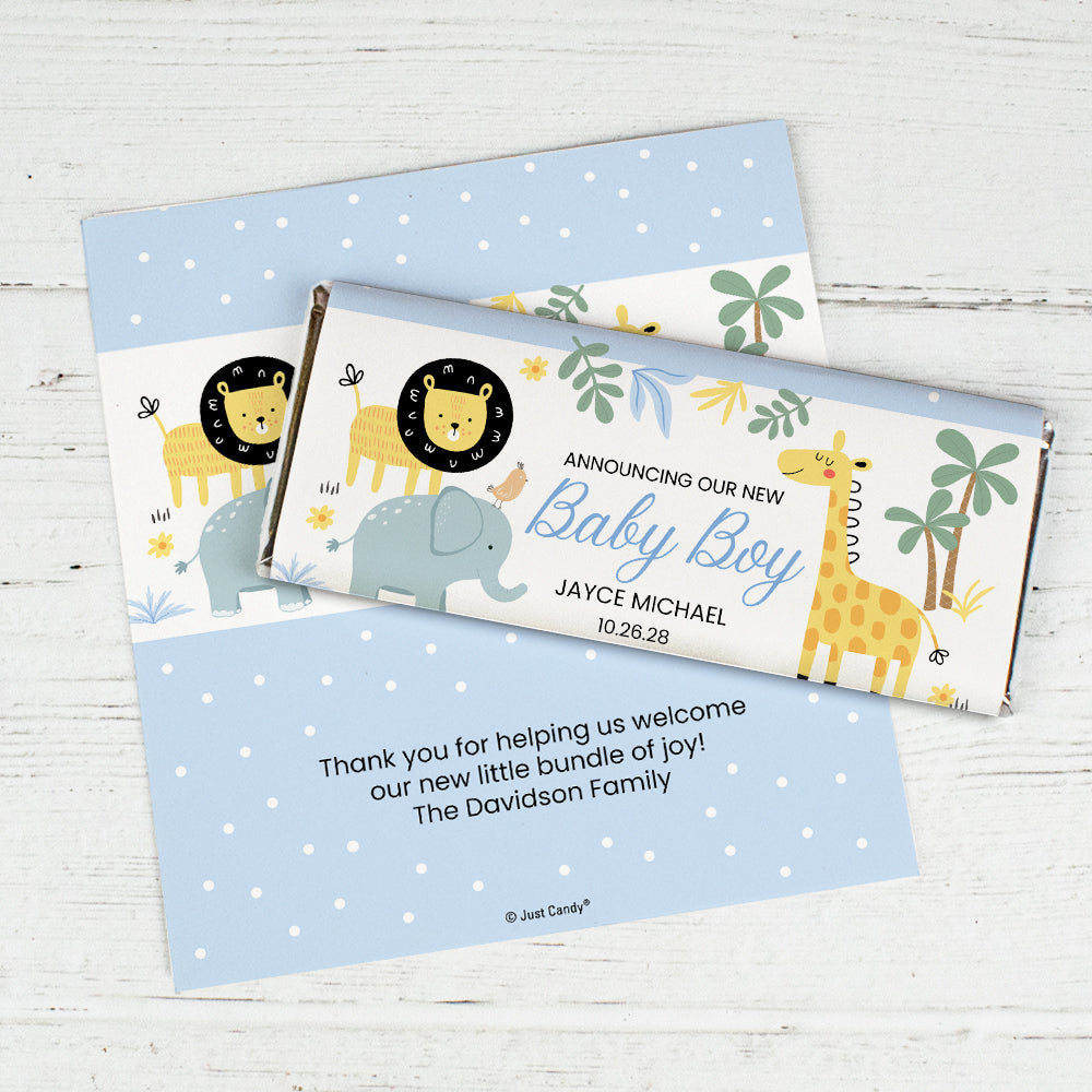 Baby Boy Announcement Personalized Chocolate Bar Wrappers Safari Friends