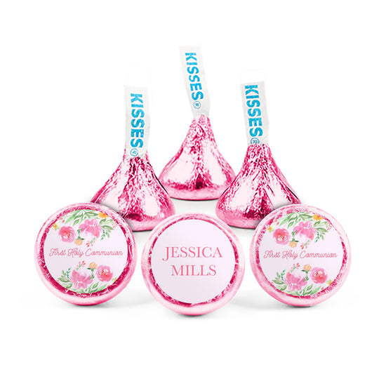 Personalized Communion Pink Roses Hershey's Kisses