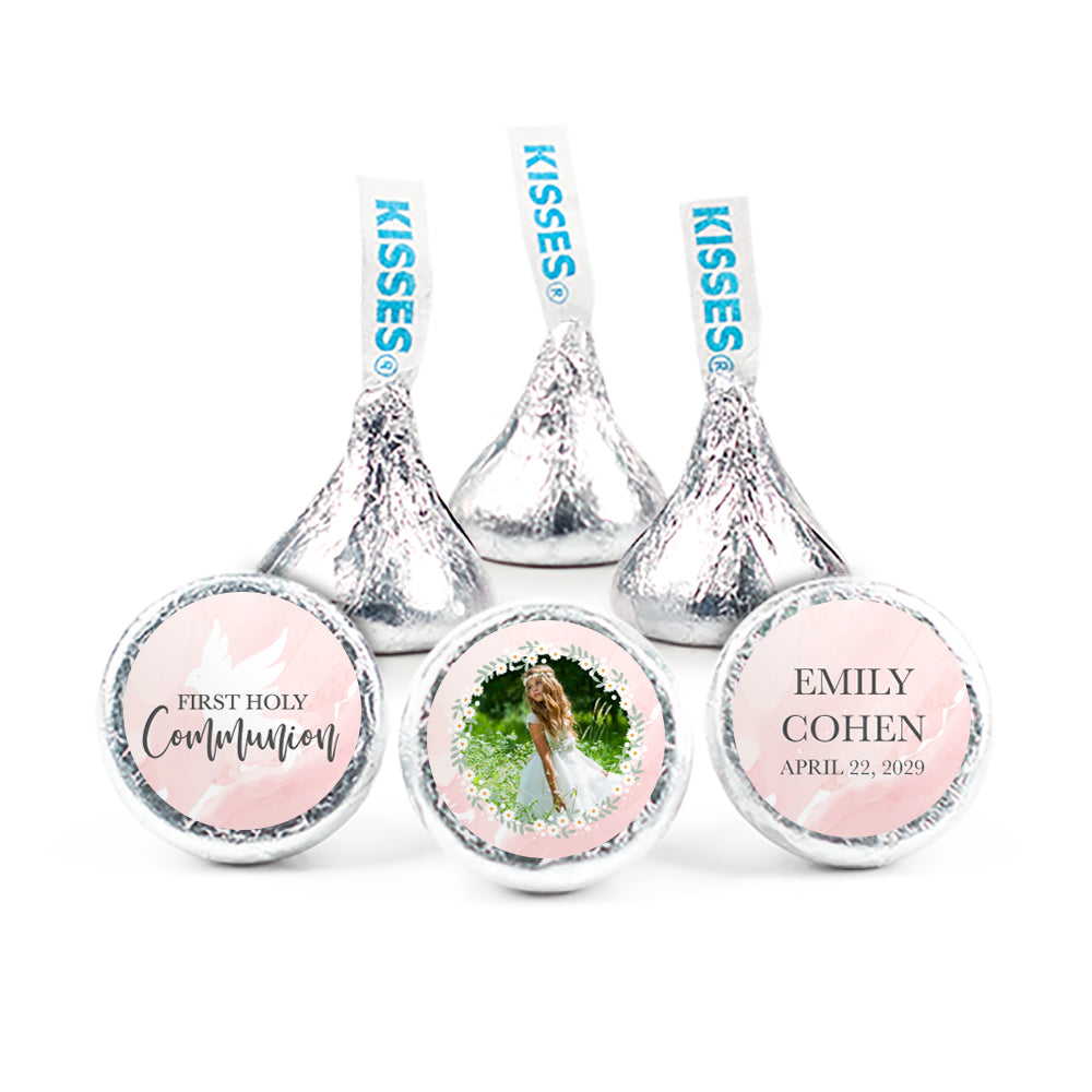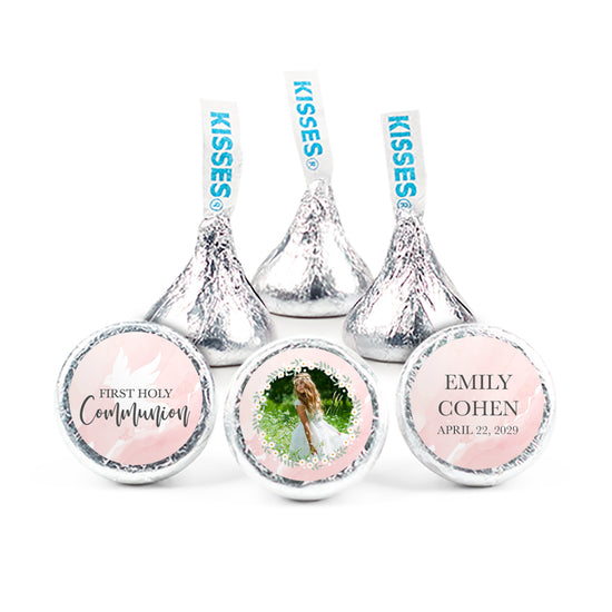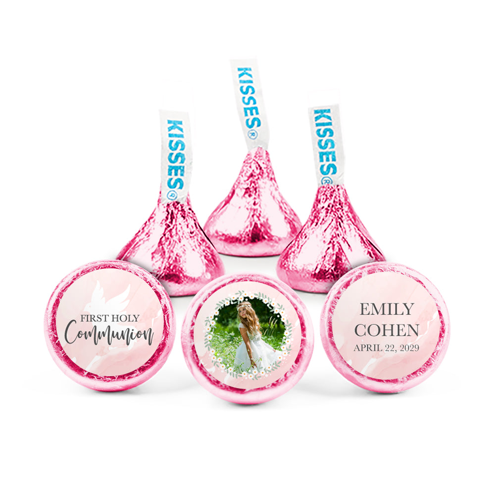 First Communion Personalized Hershey's Kisses Pink Dove Assembled Kisses