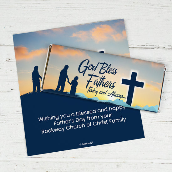 Father's Day Personalized Standard Chocolate Bar Wrappers Only - God Bless Fathers (6 Wrappers Per Sheet)