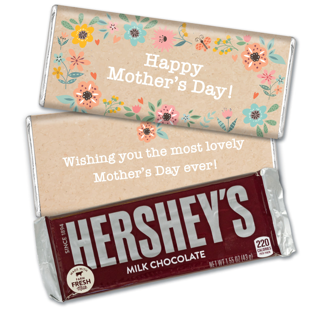 Personalized Mother's Day Tan Floral Chocolate Bar & Wrapper