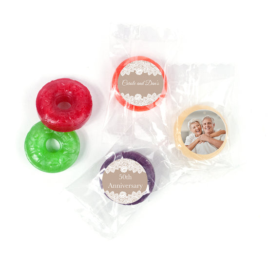 Personalized Wedding Anniversary Burlap and Lace LifeSavers 5 Flavor Hard Candy