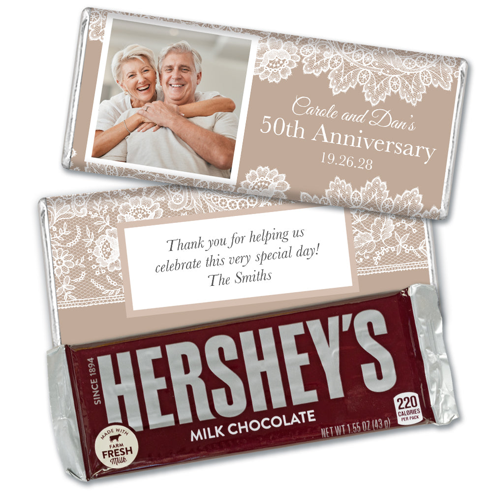 Personalized Anniversary Burlap and Lace Hershey's Chocolate Bar and Wrapper