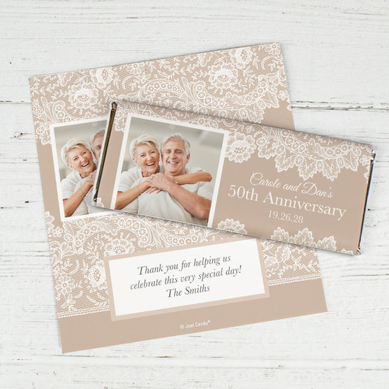 Personalized Anniversary Burlap and Lace Chocolate Bar Wrappers Only