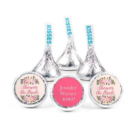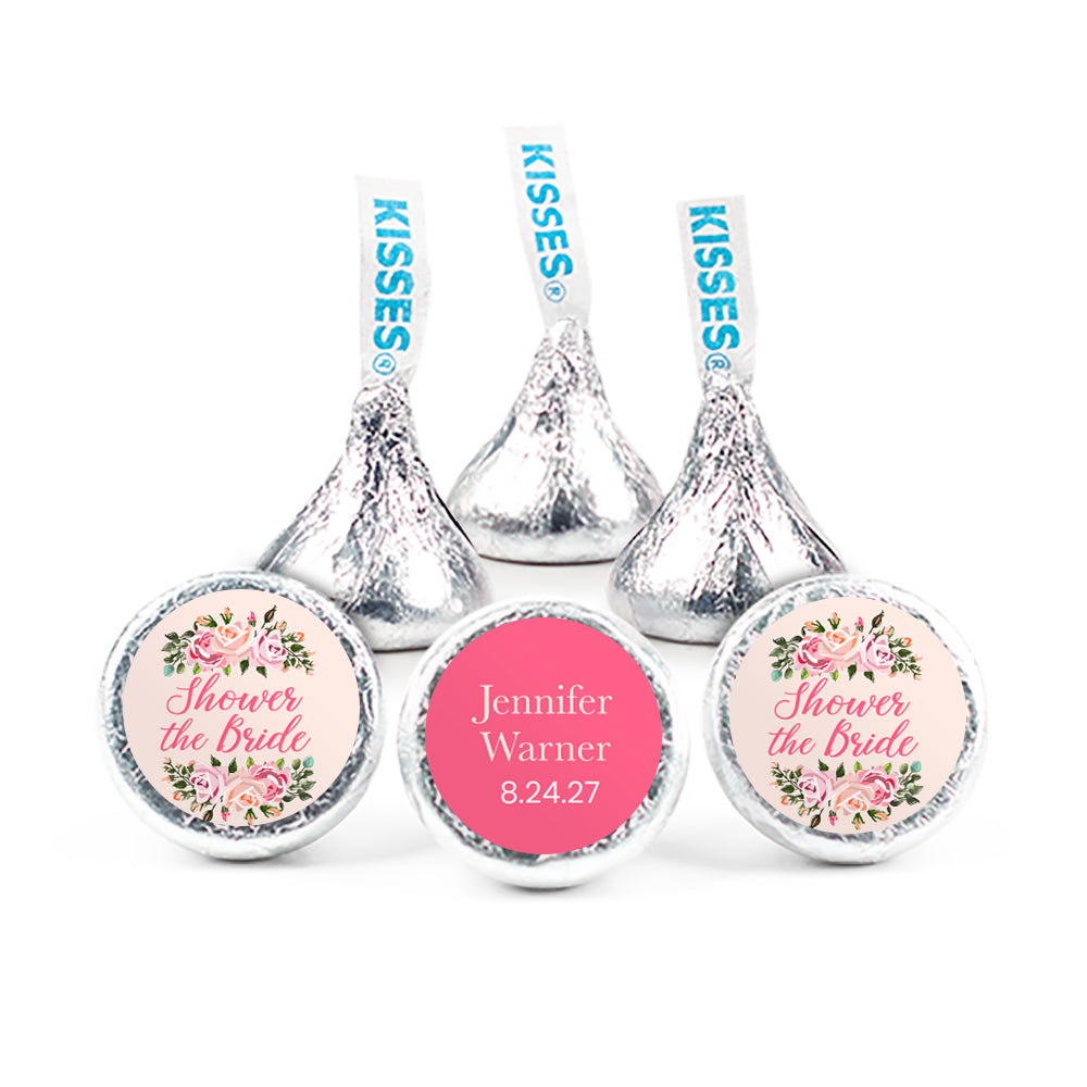 Personalized Bridal Shower Pink Floral 3/4" Round Stickers