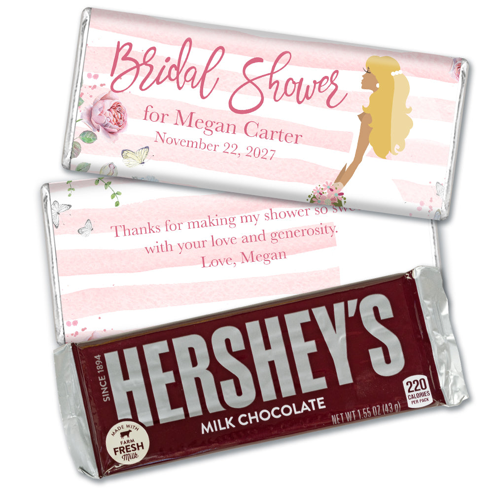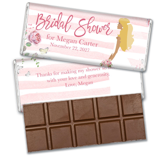 Personalized Bridal Shower Bride To Be Floral Stripe Milk Chocolate Bar & Wrapper