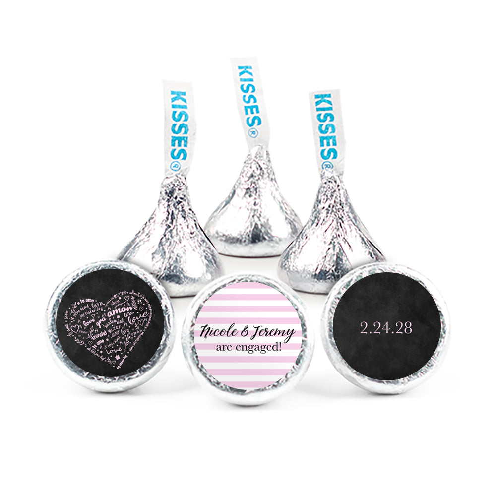 Personalized Engagement Pink Heart 3/4" Round Stickers