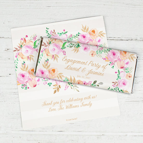 Personalized Engagment Floral Frame Chocolate Bar Wrappers Only