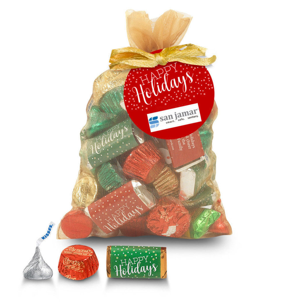Personalized Gold Medium Organza Bag Happy Holidays Hershey's Mix