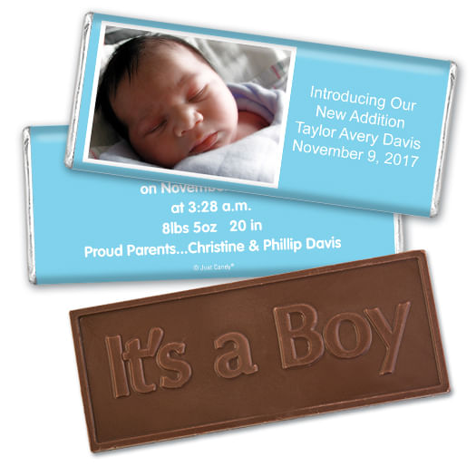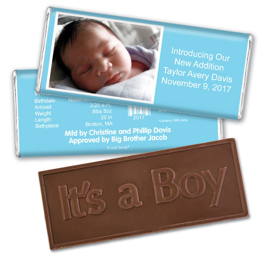 Baby Boy Announcement Personalized Embossed Chocolate Bar Photo