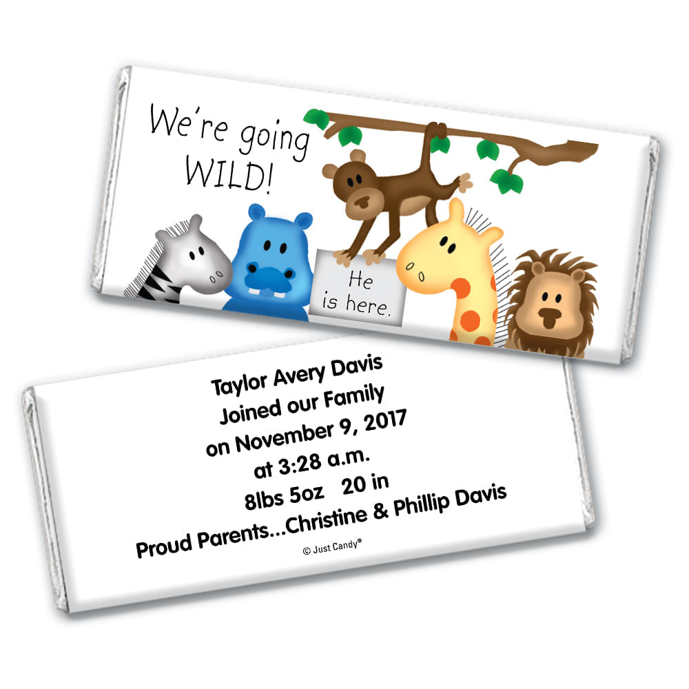 Baby Boy Announcement Personalized Hershey's Milk Chocolate Bar Going Wild Jungle Animals