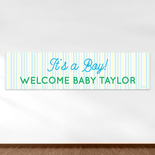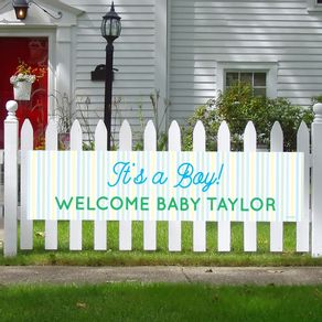 Personalized It's a Boy Stripes Boy Baby Announcement 5 Ft. Banner