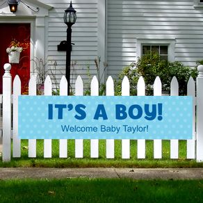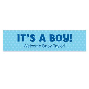 Personalized Polka Dots Boy Baby Announcement 5 Ft. Banner