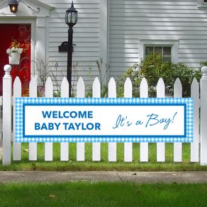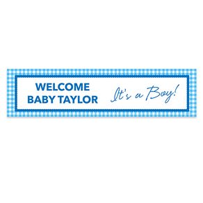 Personalized Checker Pattern Boy Baby Announcement 5 Ft. Banner
