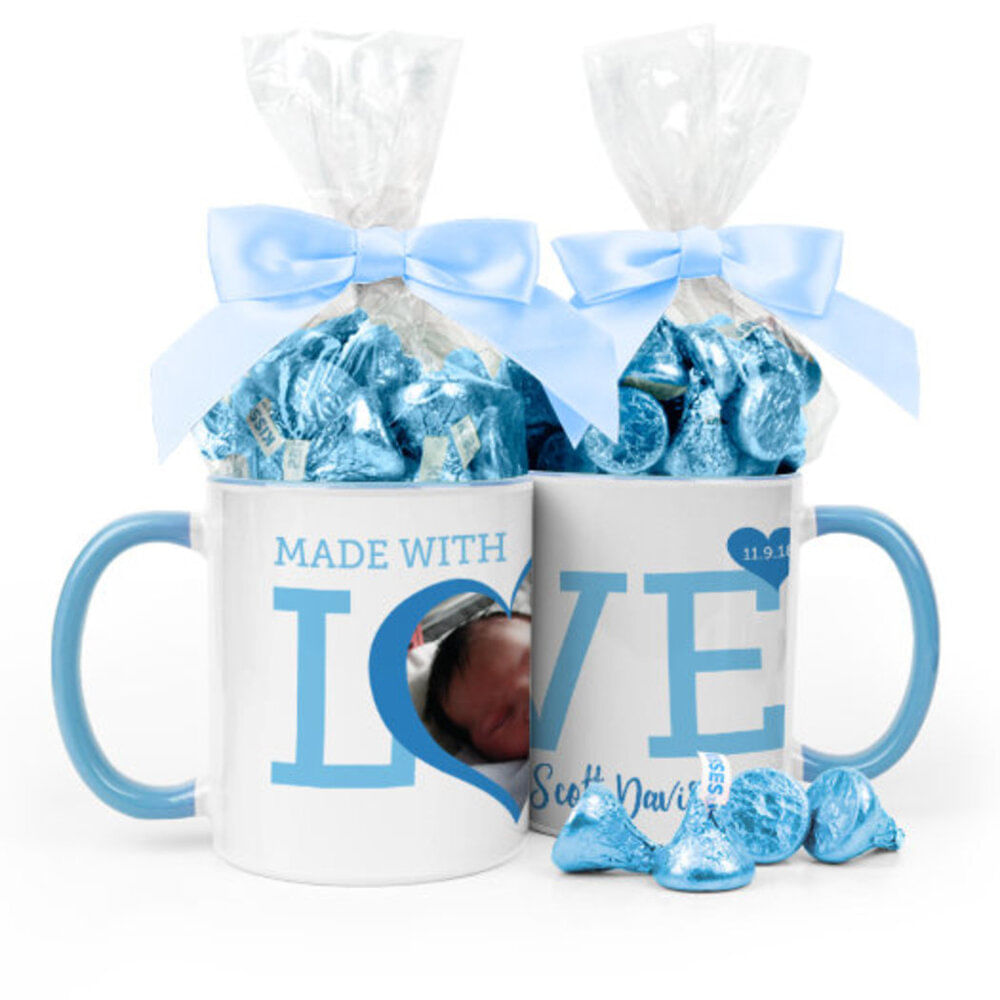 Personalized Baby Boy Announcement Hearts 11oz Mug with Hershey's Kisses