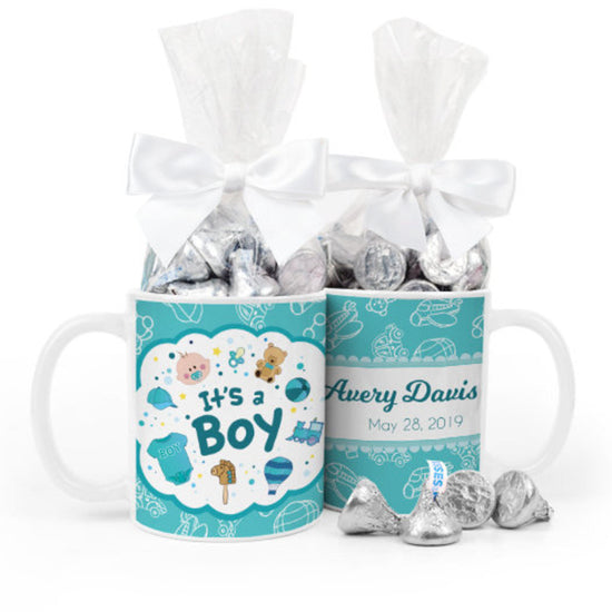 Personalized Birth Annoucement Its A Boy Bundle of Joy 11oz Mug with Hershey's Kisses