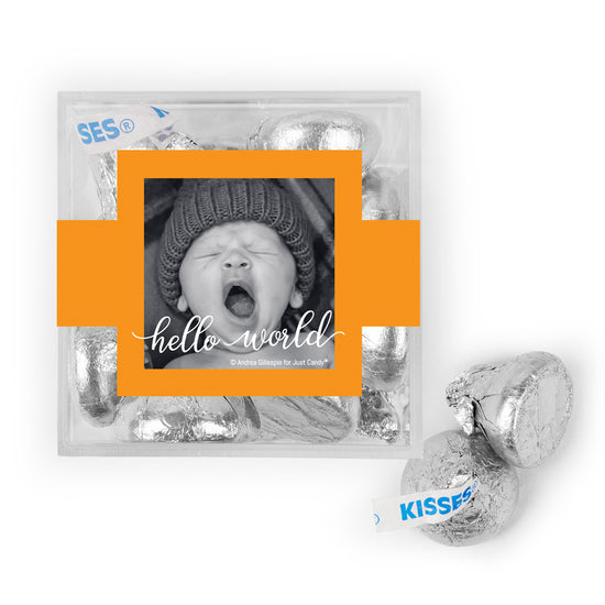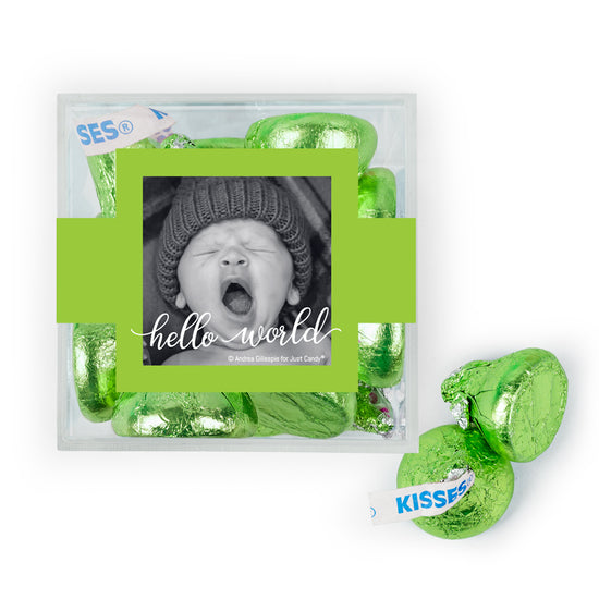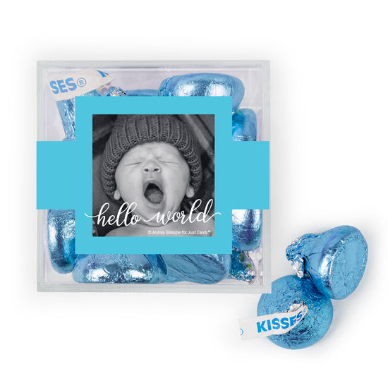 Personalized Boy Birth Announement Hello World! JUST CANDY® favor cube with Sugar Sanded Gummy Bears