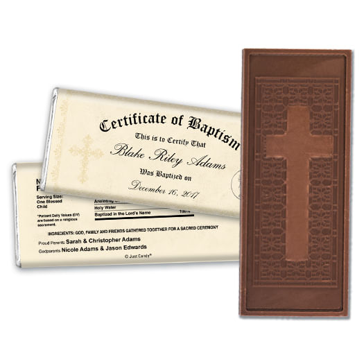 Baptism Embossed Cross Chocolate Bar Certificate of Baptism