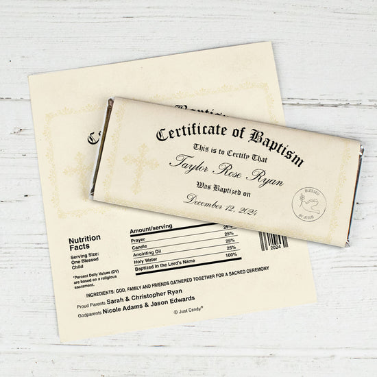 Baptism Personalized Chocolate Bar Wrappers Certificate of Baptism