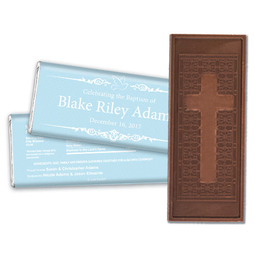 Baptism Personalized Embossed Cross Chocolate Bar Dove Frame Message