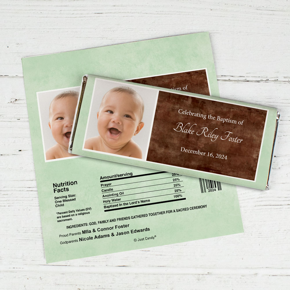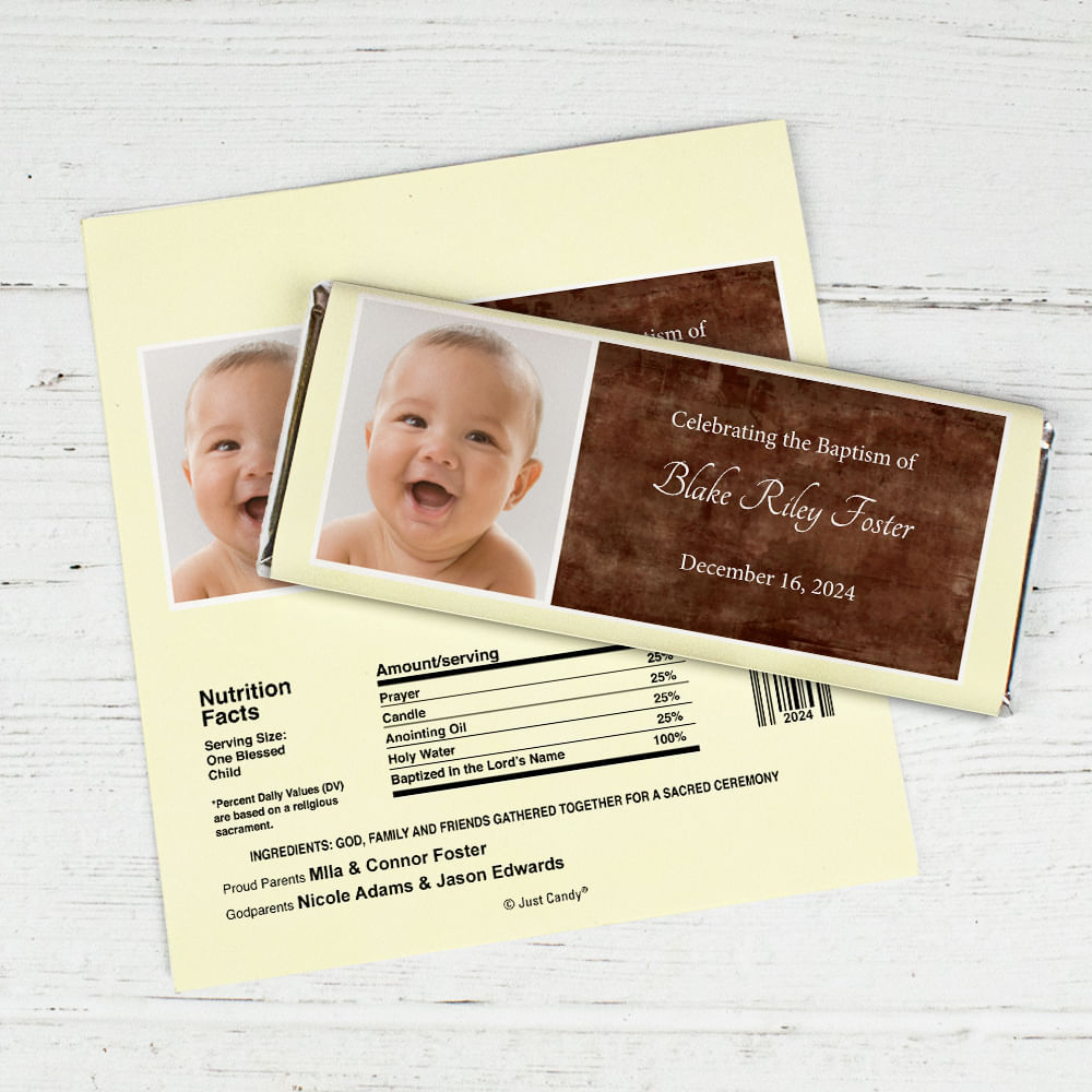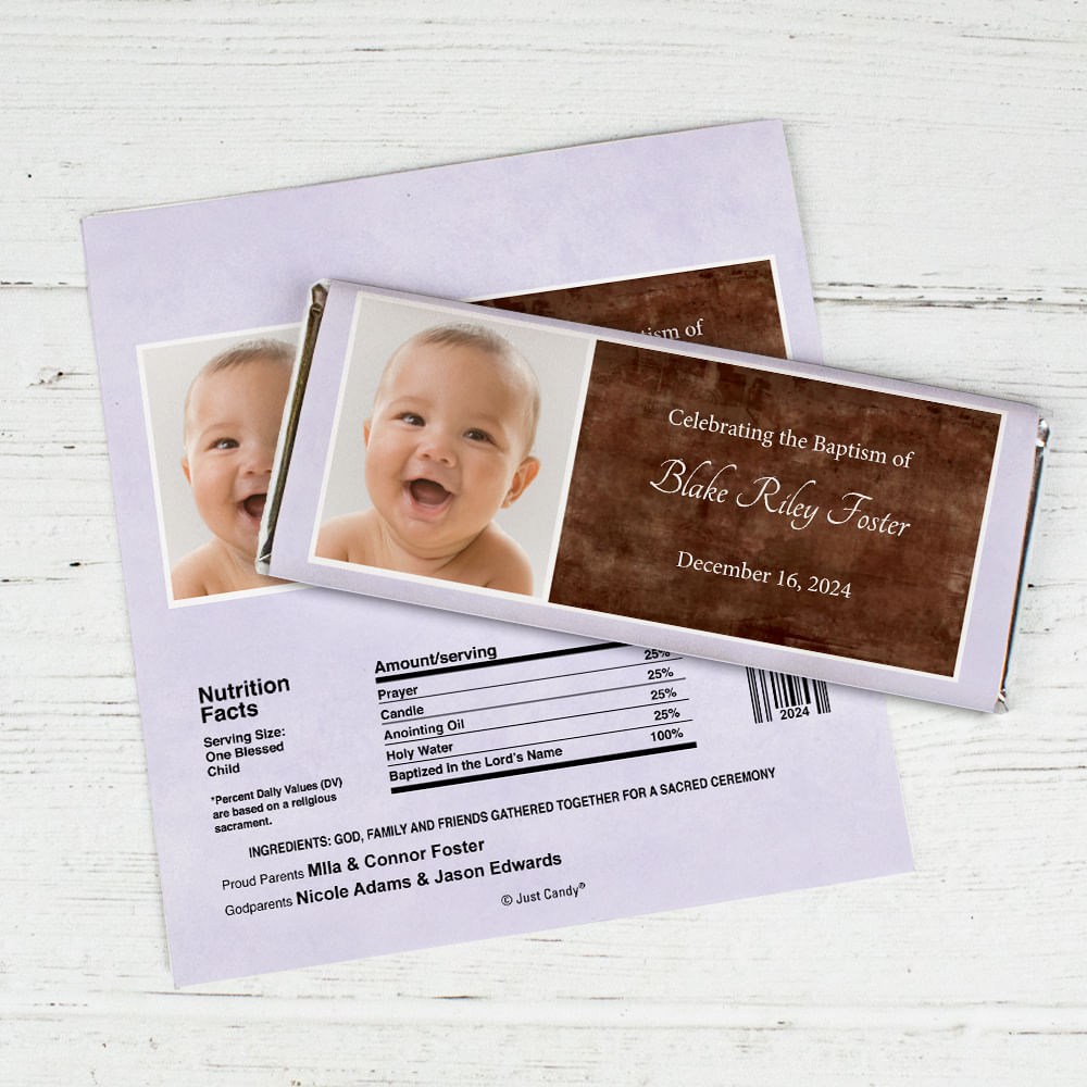 Baptism Personalized Chocolate Bar Wrappers Photo & Message