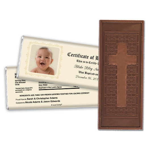 Baptism Embossed Cross Chocolate Bar Certificate with Photo