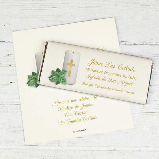 Baptism Personalized Chocolate Bar Wrappers Vela con la Cruz