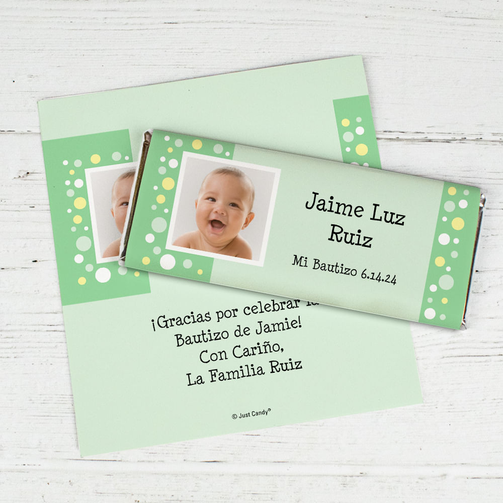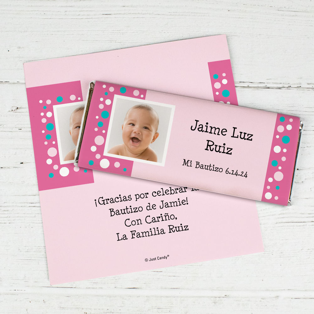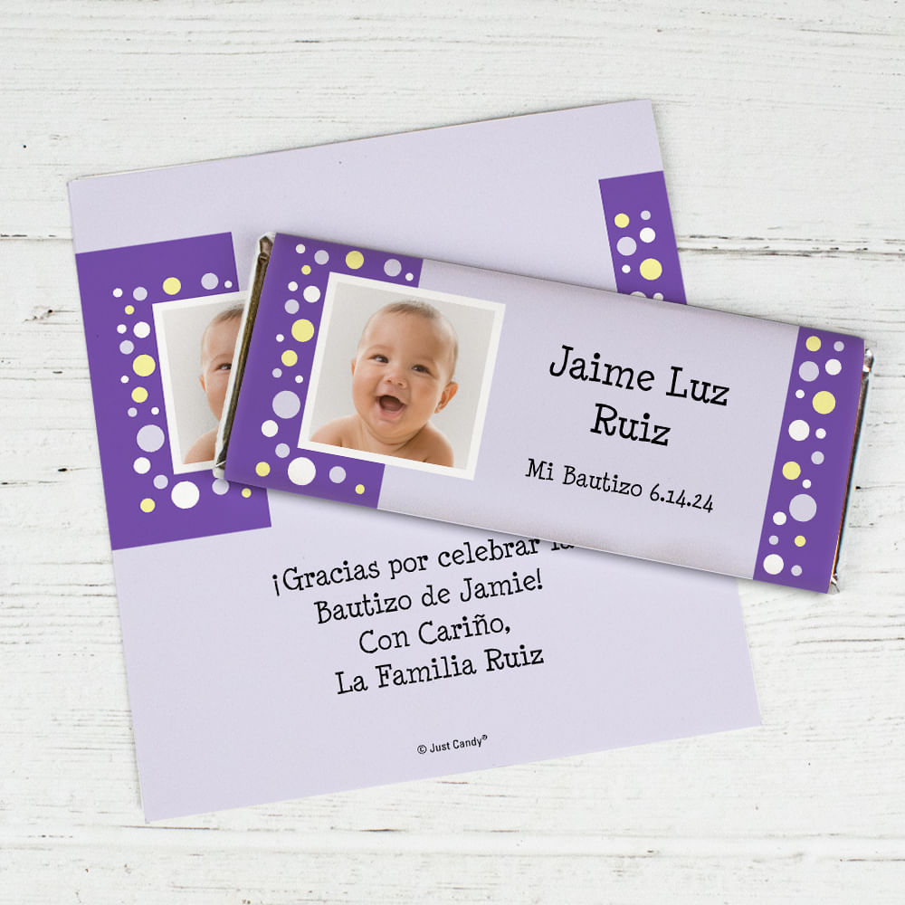 Baptism Personalized Chocolate Bar Wrappers Foto con Lunares